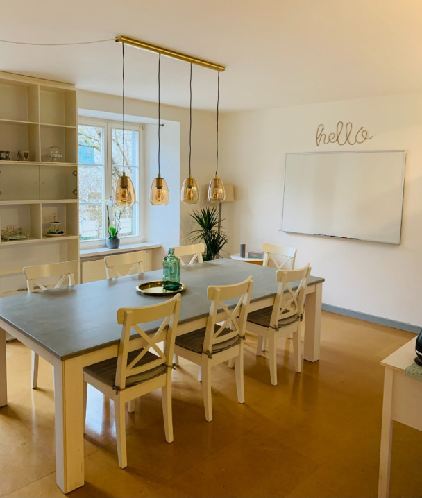 Hello steht für Sprache lernen zum Wohlfühlen. Dazu gehört eine gemütliche Lernatmosphäre in einem Kursraum, wo man sich nicht wie im Klassenzimmer sondern wie zu Hause fühlt. Schnapp dir eine Tasse Tee oder Kaffee und profitiere von einem persönlichen und professionellen Sprachunterricht in kleiner Runde oder privat.